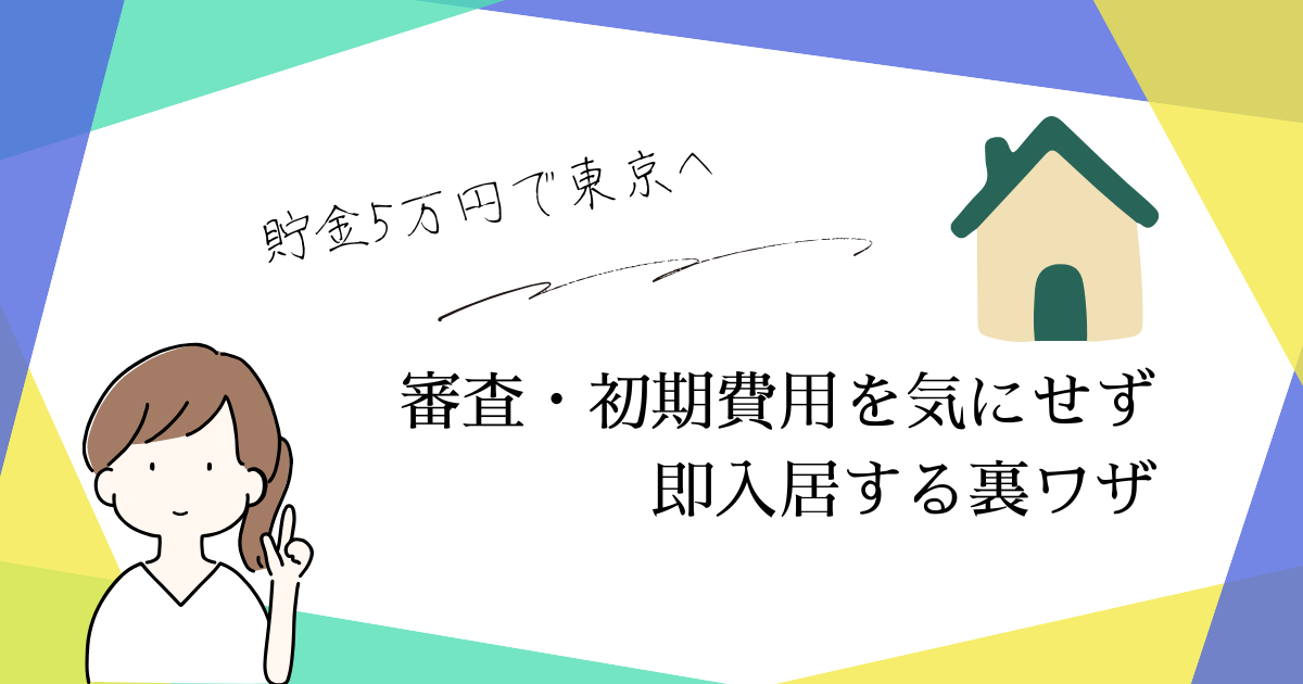 【貯金5万で東京へ】フリーターが審査・初期費用を気にせず即入居する裏ワザ